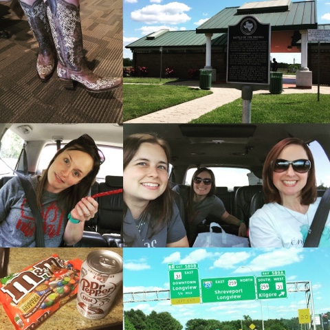 About two months ago, I decided that I wanted to go see Carrie Underwood in concert. I checked her tour schedule and my friends calendars to see if a girls' weekend was possible. One of the girls was already busy that weekend :( but the other three of us decided to go! At that time, the closest venue to Dallas that Carrie was to appear was going to be Bossier City, LA. Of course, since that time, she has added other cities, including...you guessed it, DALLAS! O'WELL....we needed the weekend away! This weekend was SHOW TIME!!! I took off on Friday. I asked Brice to get us some snacks. Every good girls' trip should include: peanut butter M&Ms, our favorite drinks (Diet Dr. Pepper for me, Coke for Rachel, and water for Sara), popcorn, Chex Mix, and Twizzlers, of course!! :) I downloaded Carrie's CDs on iTunes, burned them on discs, got everything and everyone in the car and we were headed out!!!! First stop, Zig Zag Stripe...